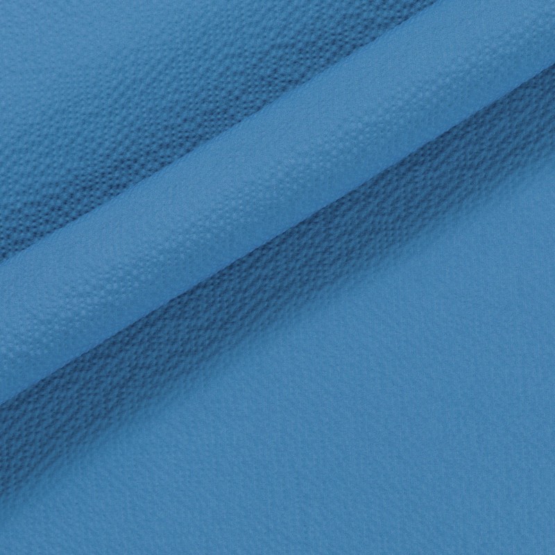 Tessuto seersucker, di cotone stretch, unito celeste, perfetto per la realizzazione di un abito o una giacca daywear ricercati.