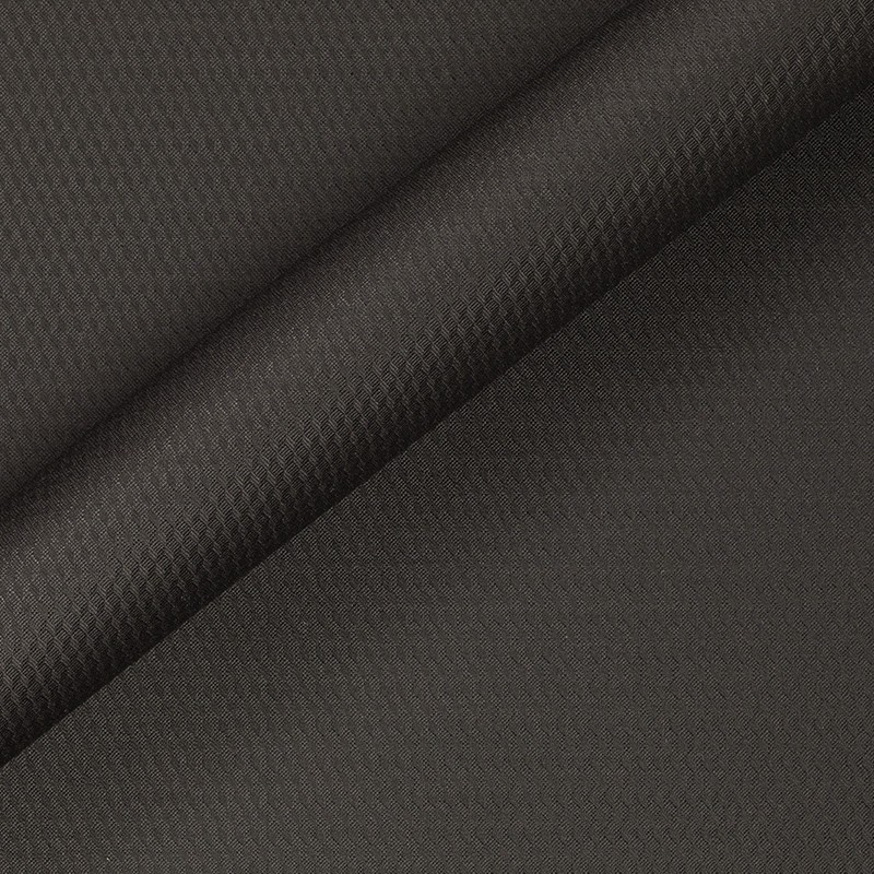 Tessuto micro jacquard, in lana e seta, nella tonalità del nero. Adatto alla realizzazione di eleganti abiti da cerimonia.