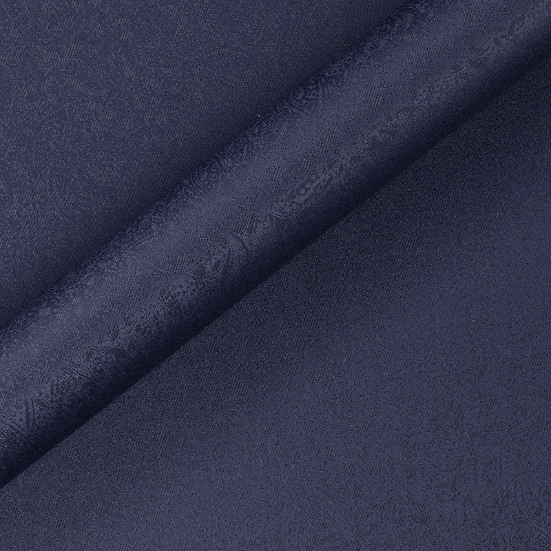 Tessuto jacquard, in lana e seta, nella tonalità del blu navy. Adatto alla realizzazione di eleganti abiti da cerimonia.