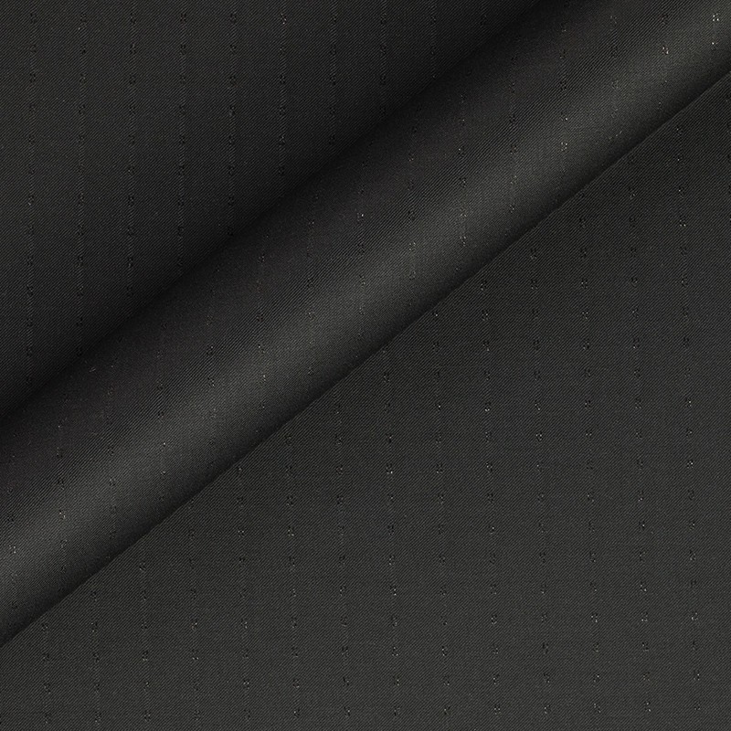 Tessuto gessato, tono su tono, in lurex,nei toni del nero. Adatto alla realizzazione di eleganti abiti da cerimonia.