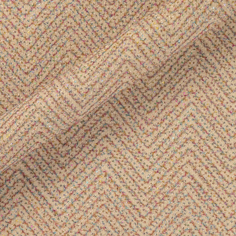 Tessuto ricamato disegno chevron con paillettes multicolor Ungaro collection SS25,ideale per giacche moderne