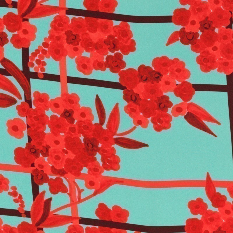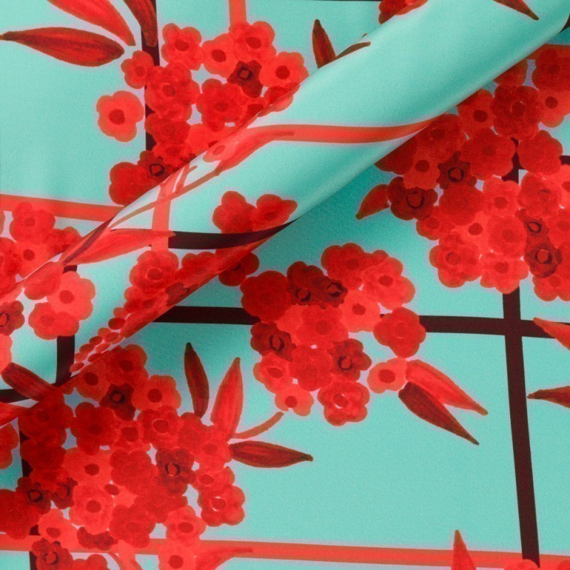 Tessuto in satin di seta opaco Ungaro collection SS25 disegno floreale con check,adatto per abiti e gonne.