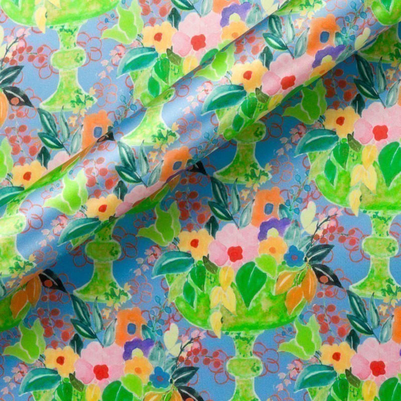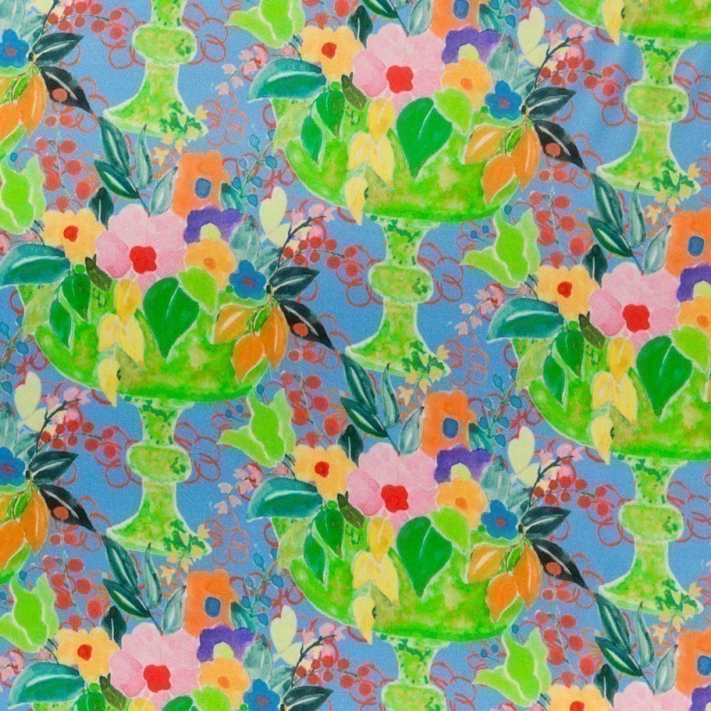Tessuto in satin di seta Ungaro collection SS25 con disegno floreale acquarellato,adatto per abiti con personalita'.