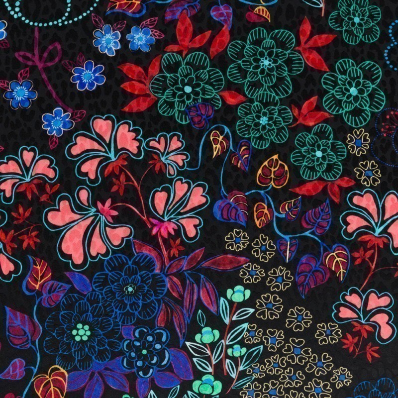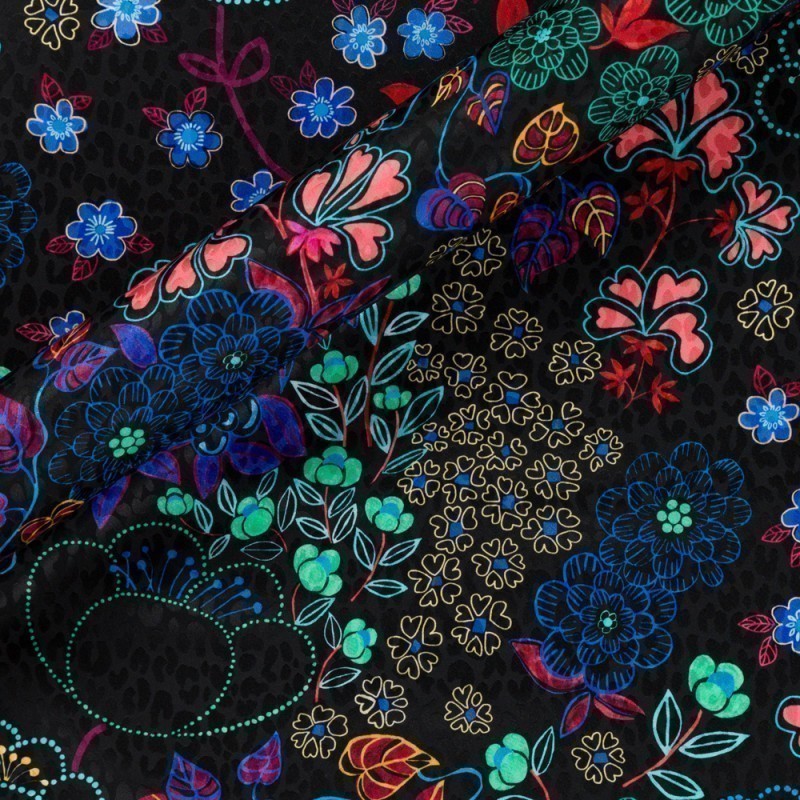 Tessuto in jacquard di seta Ungaro collection SS25 con disegno floreale retro-chic multicolor.