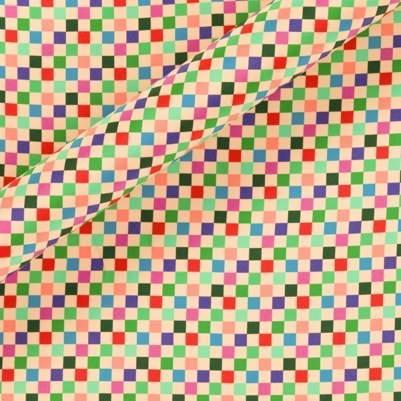 Tessuto in cady di seta ungaro collection SS25 disegno damier multicolor,adatto per gonne e abiti da giorno