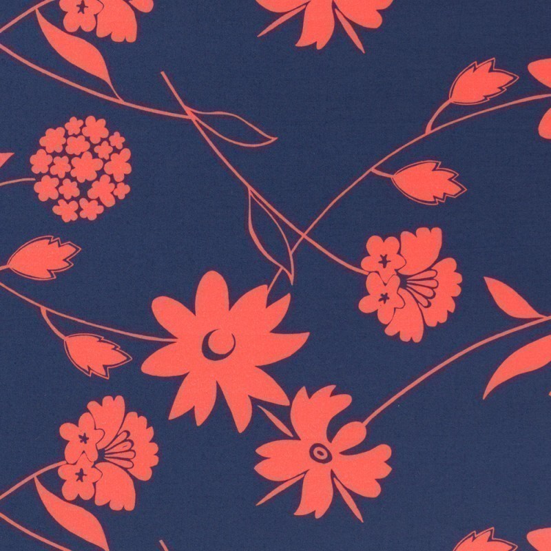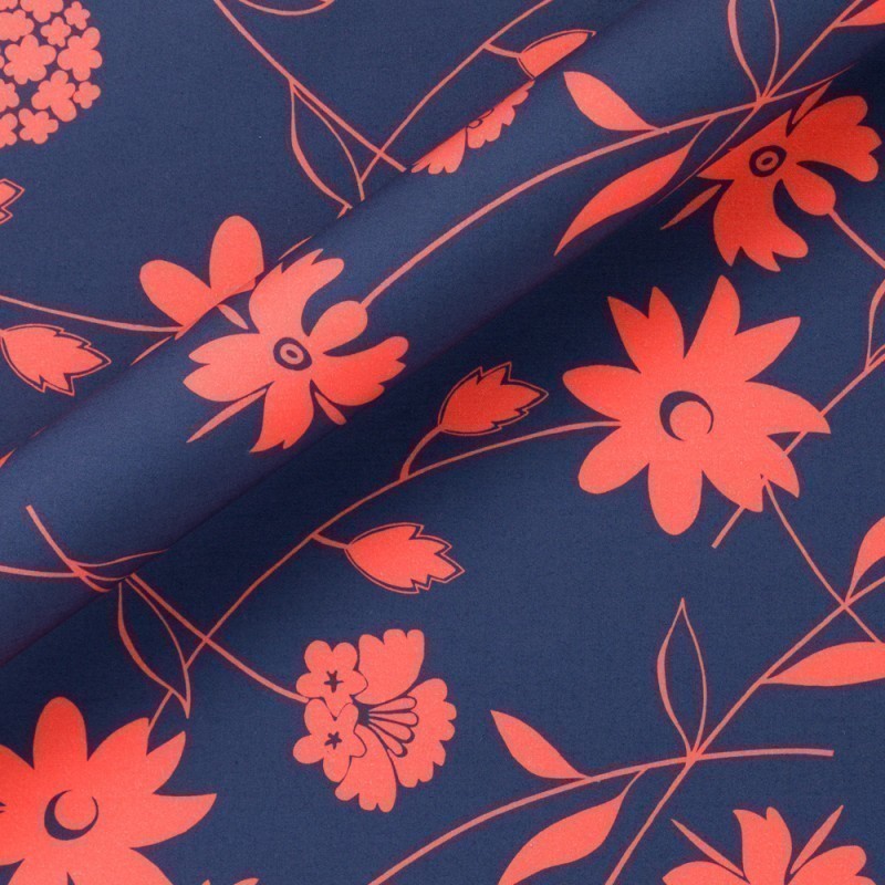 Tessuto in cotone stretch Ungaro collection SS25 con disegno floreale stilizzato,adatto per abiti e pantaloni moderni.