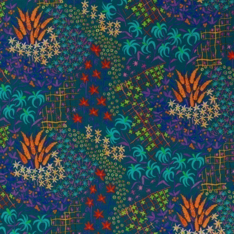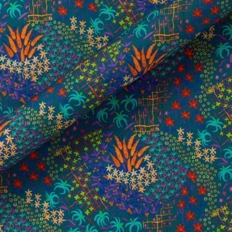 Tessuto in lino Ungaro collection SS25 con disegno fantasia floreale multicolor,adatto per ampi e freschi abiti da giorno e pantaloni.