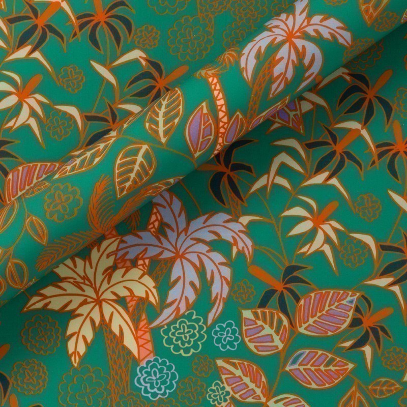 Tessuto in popeline di cotone Ungaro collection SS25 con disegno fantasia retro-chic multicolor.