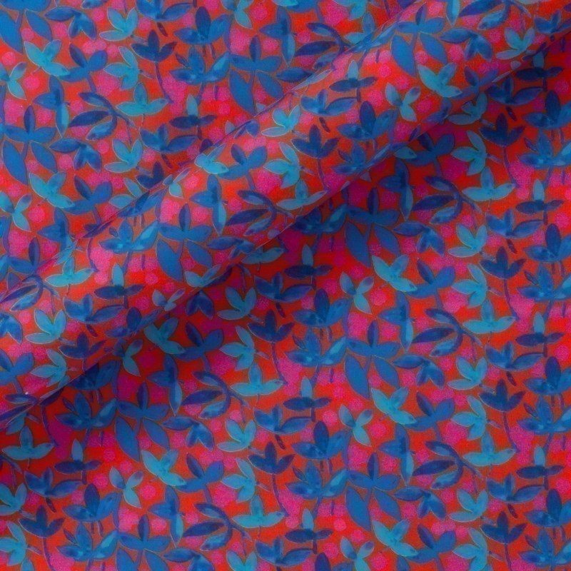 Tessuto in tela di cotone e seta Ungaro collection SS25 con disegno fantasia foglie stilizzate