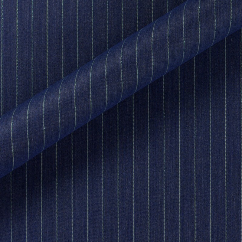 Tessuto gessato nei toni del blu con filato nygel verdeacqua Ungaro Collection SS26 ,adatto per pantaloni e giacche